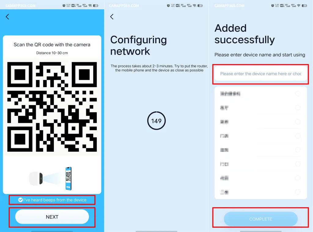 3. When the SecurityBulb camera emits the ‘Scan QR code successfully‘ voice, click NEXT and wait for the camera to connect to wifi.
