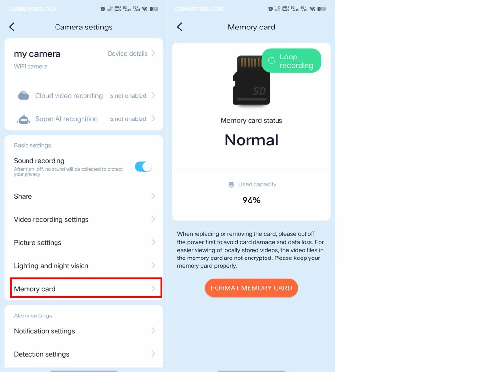 1. Insert the memory card into the SecurityBulb camera, then enter the Memory card interface to see if the camera reads the memory card.