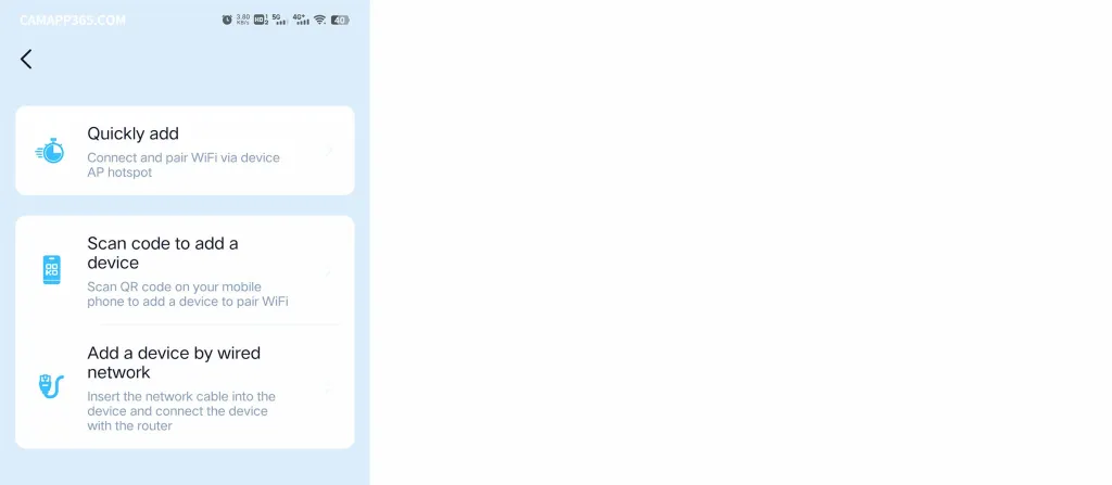 2. Then you can choose Quickly add, Scan code to add a device and Add a device by wired network.