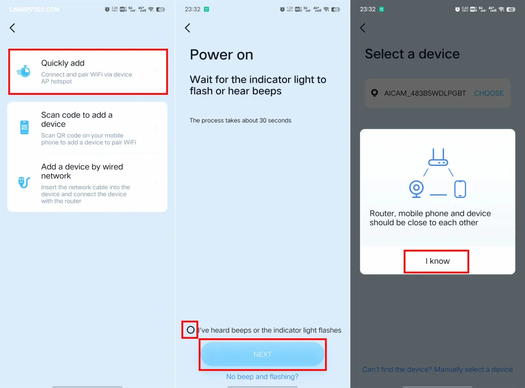 When the ‘Camera startup is complete, waiting for network to be added‘ voice, you can start to connect SecurityBulb camera, if there is no voice, please reset SecurityBulb camera.